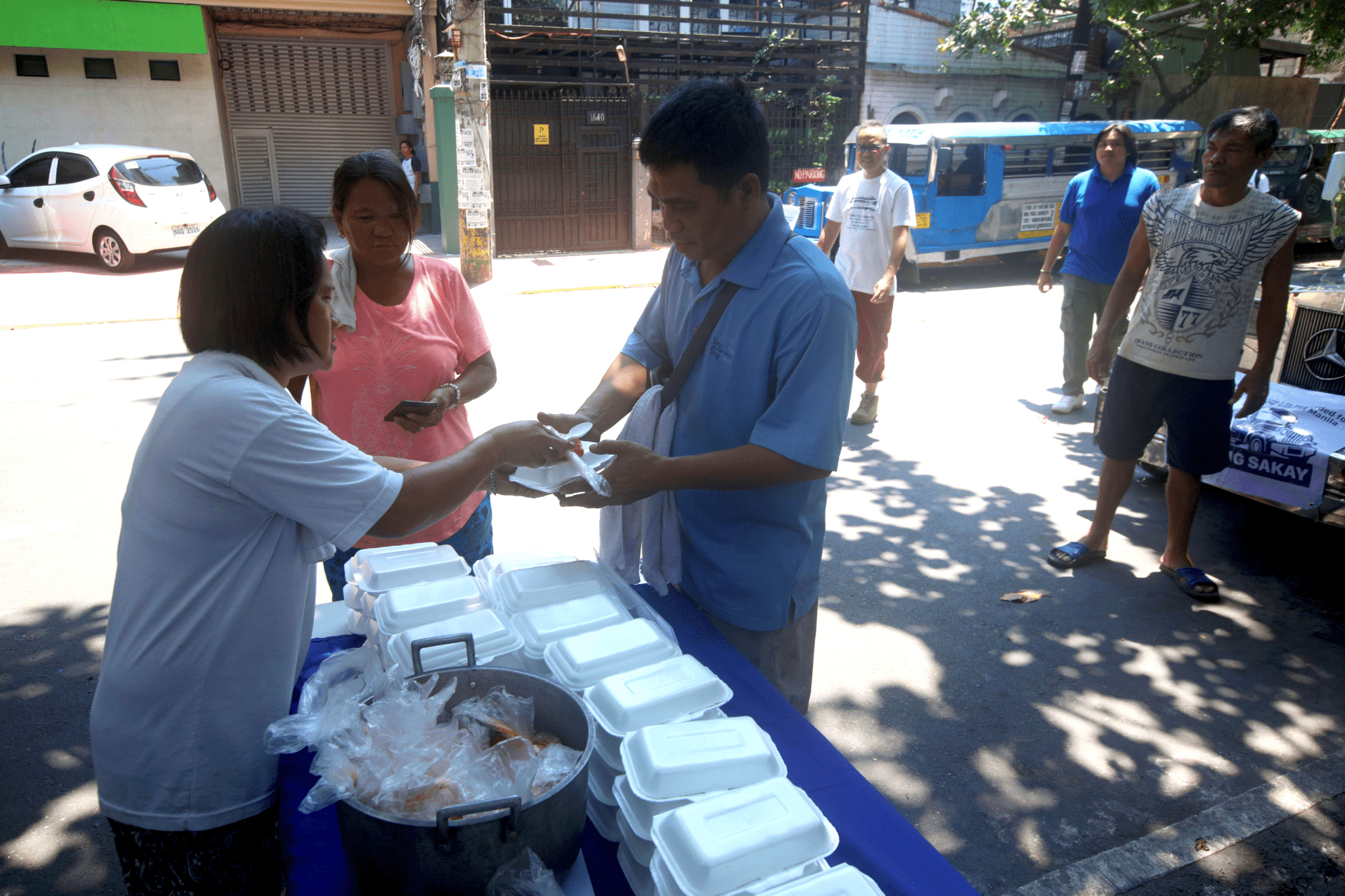 Members of non-government organization PARA Commuters Network distribute free meals to public utility vehicle drivers in Malate, Manila on Monday (April 6, 2026). The initiative provides immediate relief to transport workers who are affected by soaring oil prices. (PNA photo by Yancy Lim)