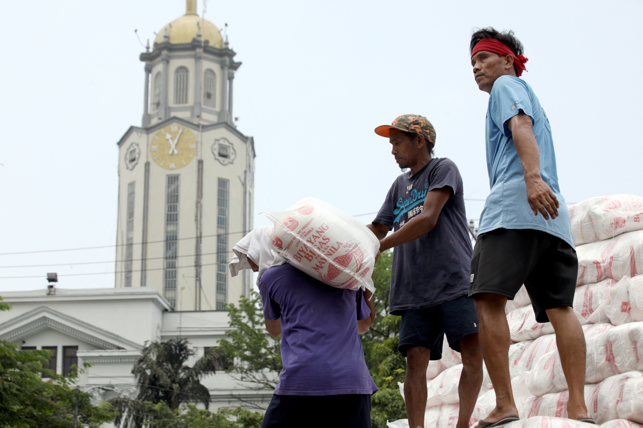 Workers load sacks of rice onto a truck at the Kartilya ng Katipunan in Manila on Tuesday (April 21, 2026) as part of a government relief program. Five trucks delivered 16,161 sacks of 10-kg. rice from the Bicol Region for distribution to selected barangays, supporting assistance to low-income households. (PNA photo by Yancy Lim)