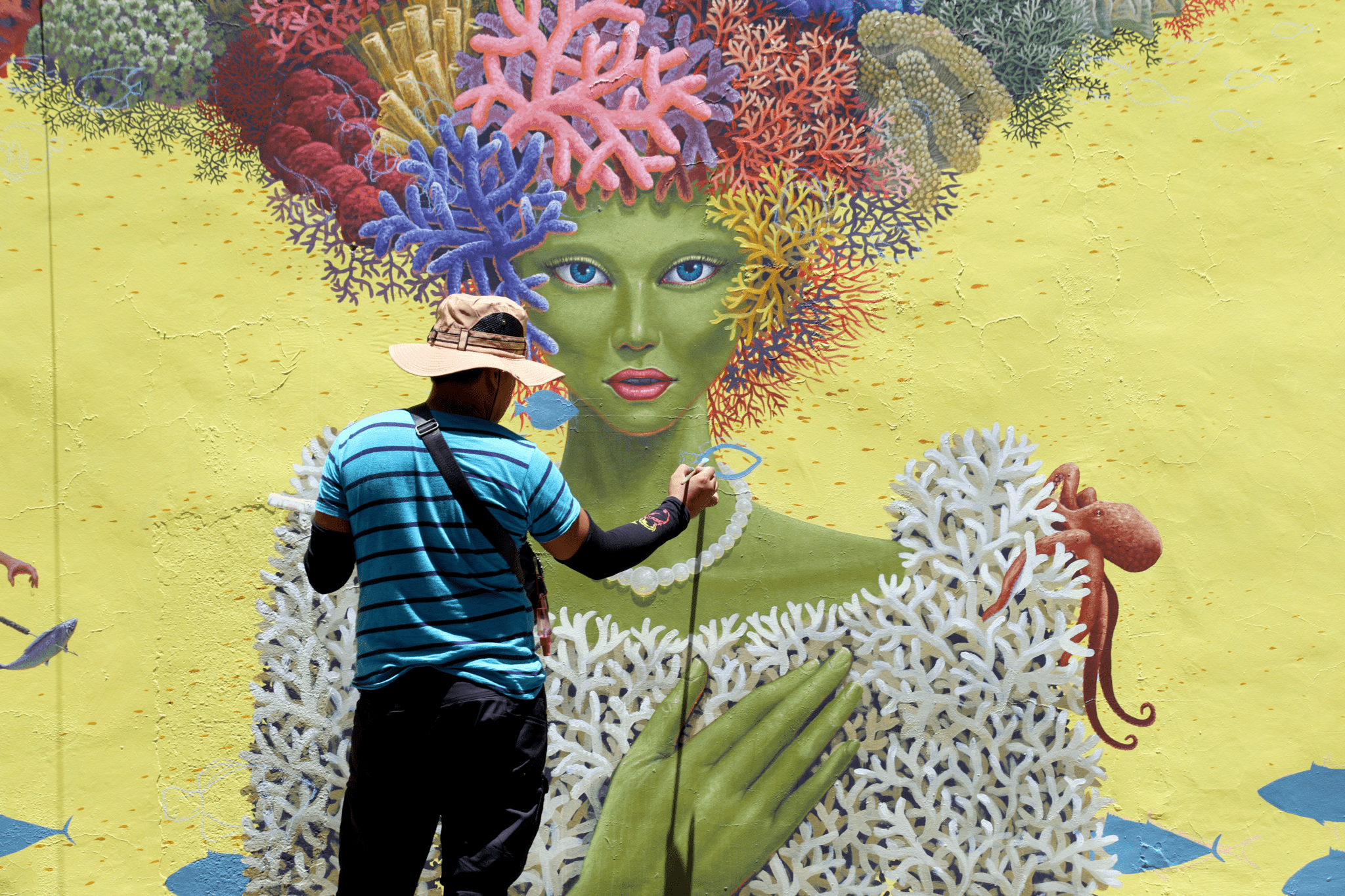 A mural artist paints a wall along Taft Avenue in Manila on Tuesday (April 7, 2026). The group of mural artists calls on other Filipino artists and communities to use public art to narrate stories about Filipino fisherfolk and transform common spaces into canvases. (PNA photo by Yancy Lim)