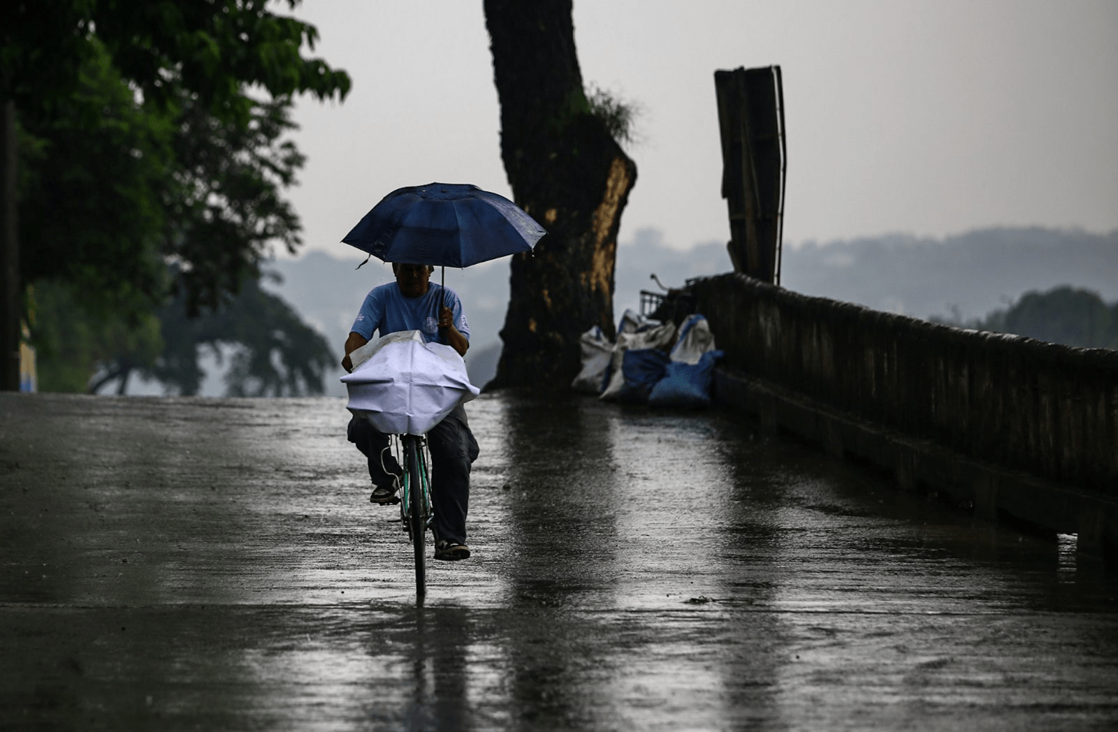 A cyclist goes around Marikina City on a gloomy Friday afternoon (Oct. 3, Friday). Tropical cyclone Paolo brought rains and winds to most parts of Luzon, but better weather is expected during the weekend as Paolo exits the Philippine Area of Responsibility Saturday (Oct. 4) morning. (PNA photo by Joan Bondoc)
