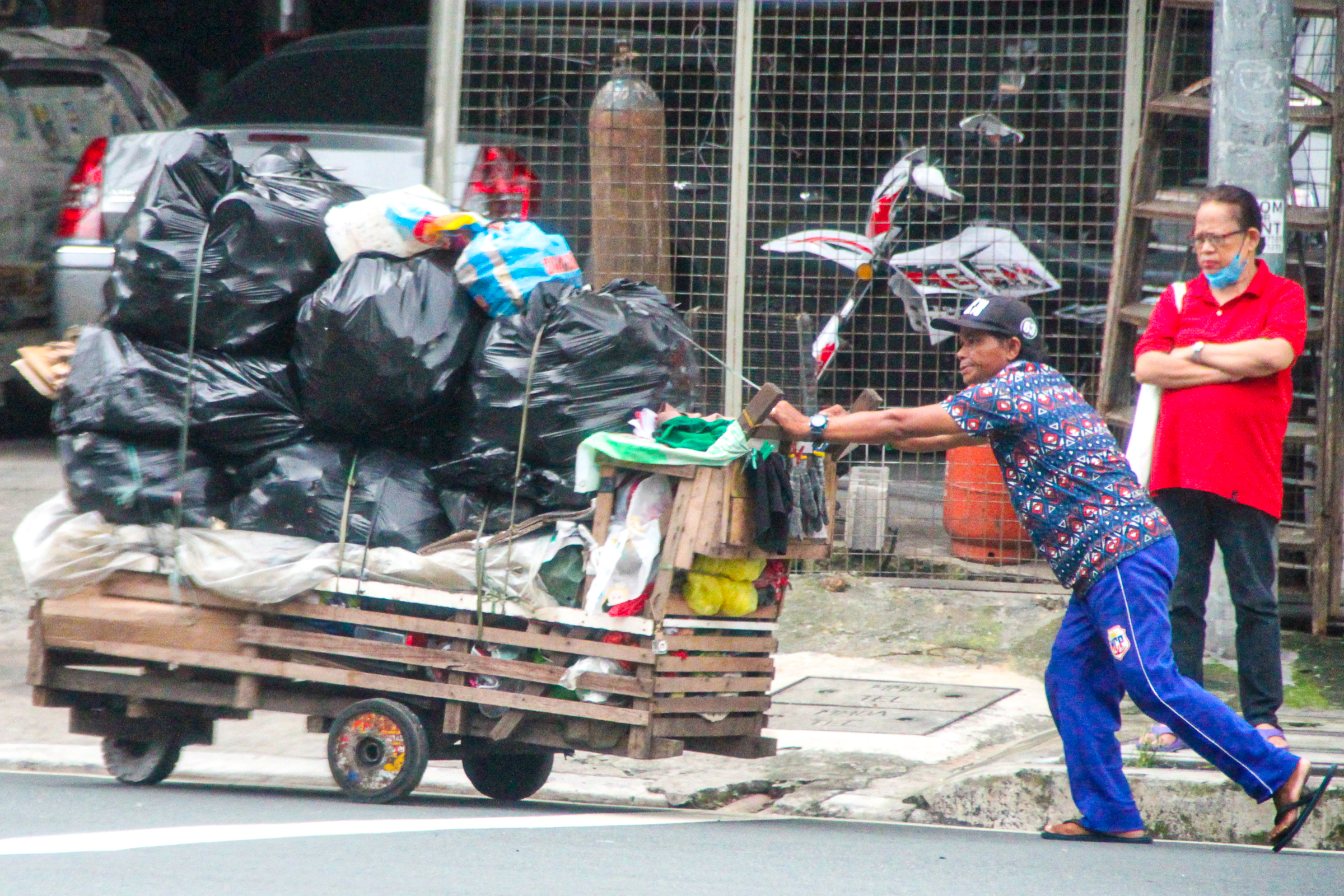 A collector of recyclables pushes his cart along Kamuning Road in Quezon City, on Saturday (Sept. 27, 2025). The Ecological Solid Waste Management Act mandates the establishment of Material Recovery Facilities and provides support to local government units in implementing sustainable waste management. (PNA photo by Robert Oswald P. Alfiler)
